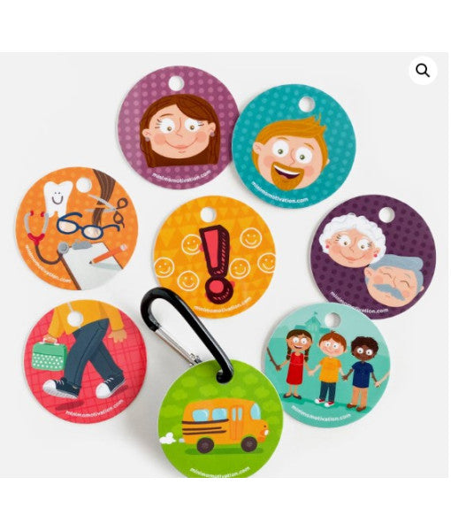 With the practical Back Home Reminder Set, remind your little one in a practical and fun way how they leave school. Whether they're leaving by bus or on foot, with Dad or Grandma, at the end of the day or for an appointment, it's the perfect tool to reassure young schoolchildren... and school staff!