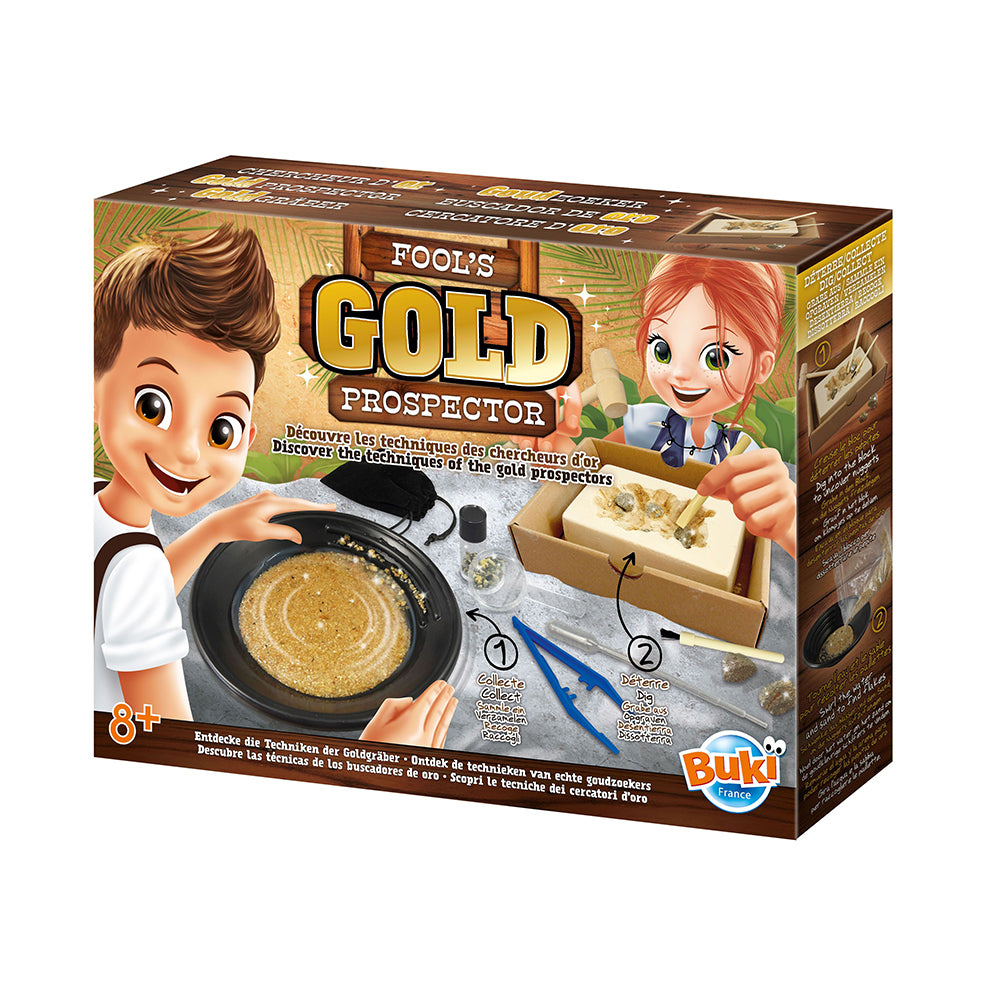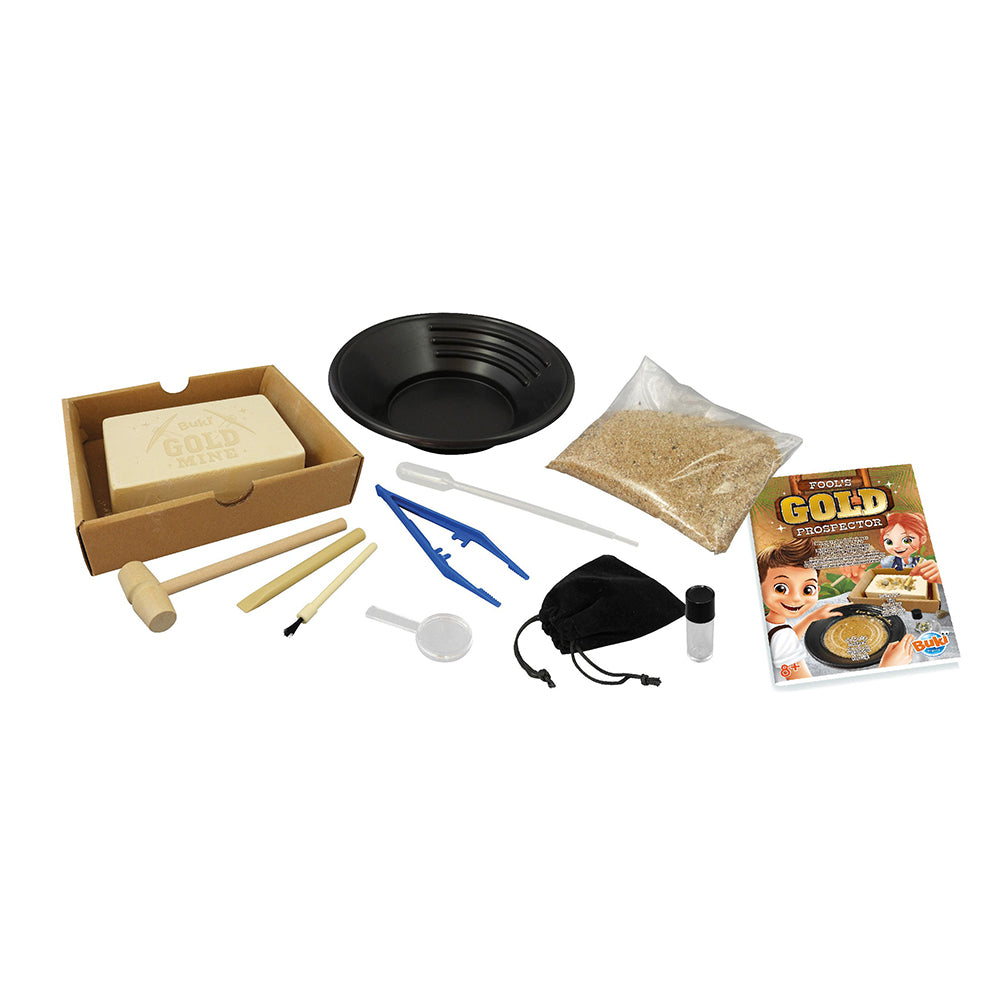 Two techniques for exploring gold: gold panning to separate the sand from the gold and mining to unearth nuggets of fool's gold.