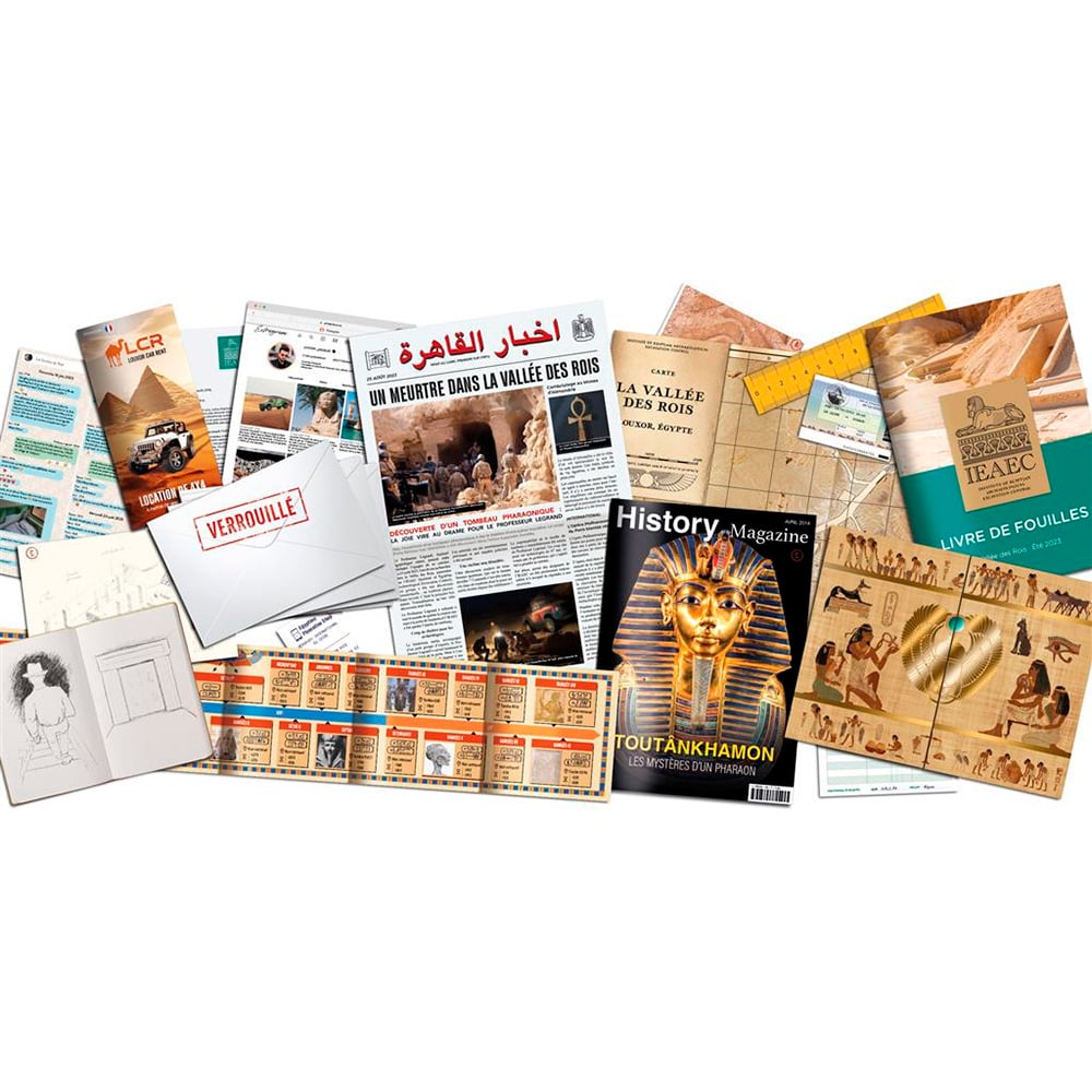 📚 UN DOSSIER CRIMINEL COMPLET : Contient un guide des fouilles, des transparents de la vallée des rois, des papyrus, un article de presse, des croquis, des contenus audio…