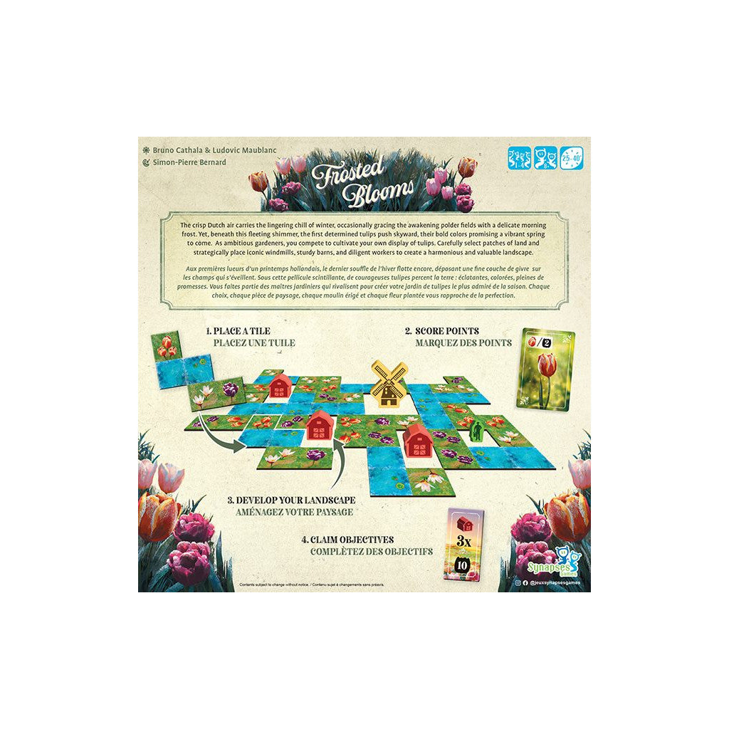 Dans Frosted Blooms, un jeu signé Bruno Cathala et Ludovic Maublanc, les joueurs rivalisent pour créer le jardin de tulipes le plus harmonieux et le plus précieux au fil de dix manches.