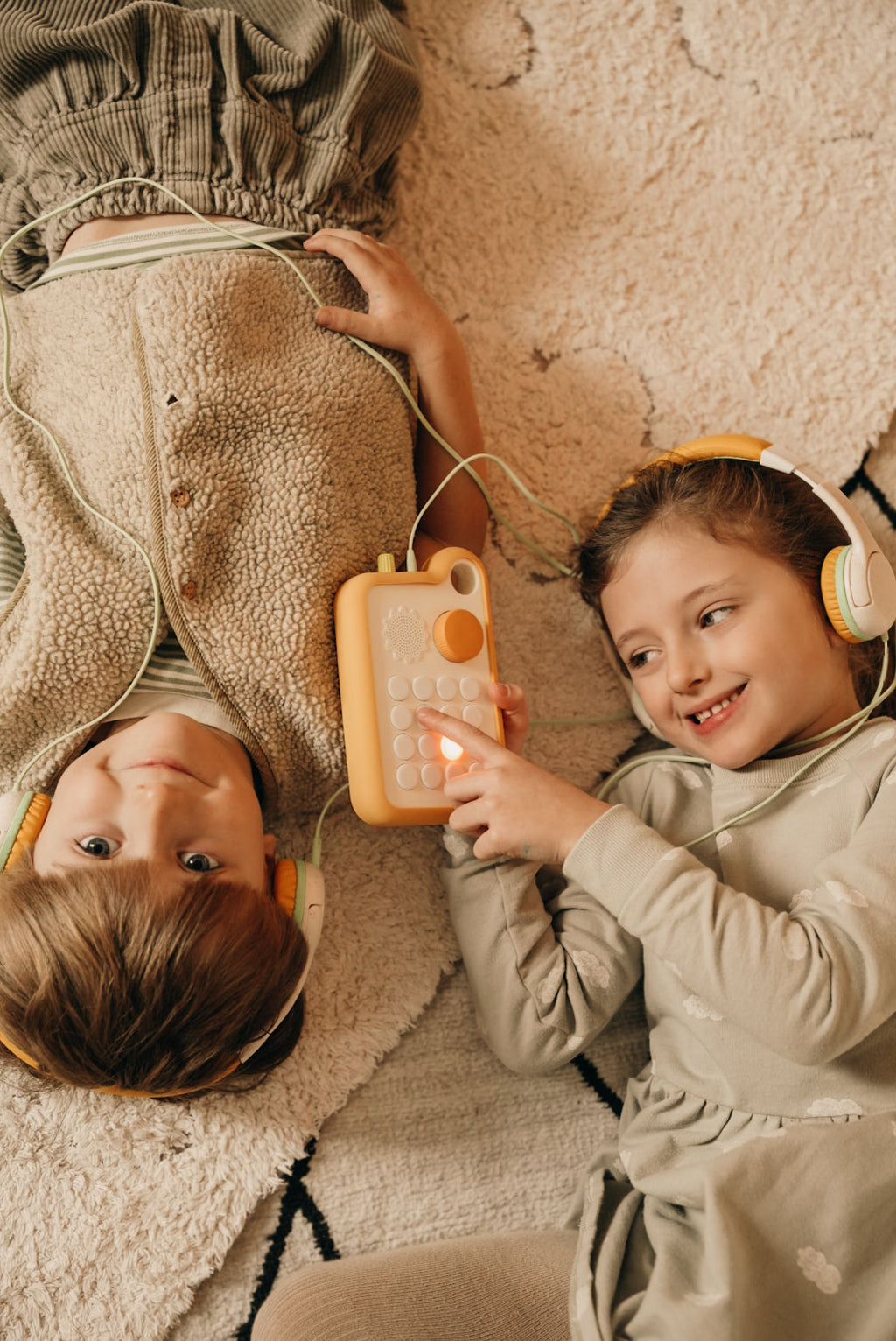 Ce casque permet de connecter un autre casque Fabli, offrant ainsi la possibilité d’écouter les contenus à plusieurs, en toute simplicité.