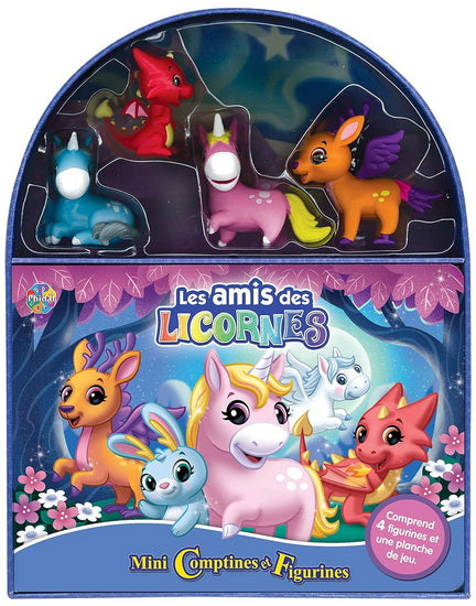 The Mini Rhymes and Figurines collection sets include an illustrated book, 4 figurines, and a game board. Read the story, then use the figurines and game board to have fun creating exciting new adventures.