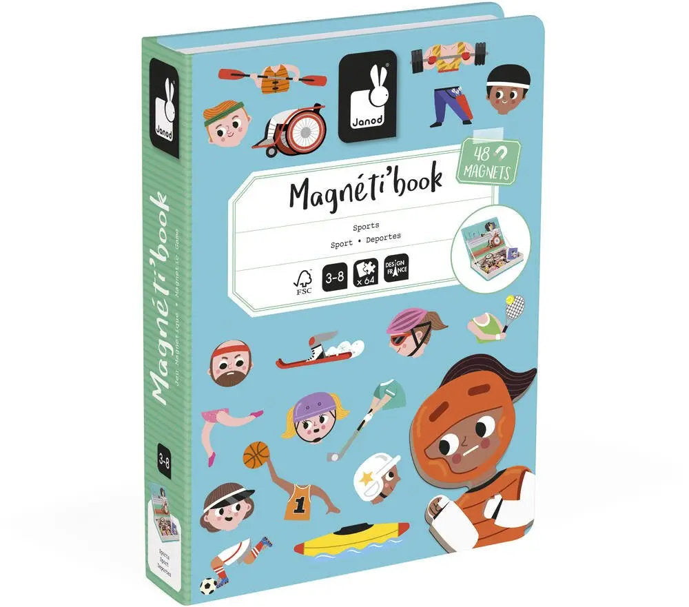 Long live sport! With this lovely, colorful magnetic toy, your child will discover 16 sports, with the possibility of imagining many more! It is composed of a magnetic support, 48 magnets and 16 cards representing well-known sports. Young and old alike will have fun reproducing the models and mixing them to imagine mixes of sports, each one more wacky than the last. Magnetic toy made from FSC cardboard