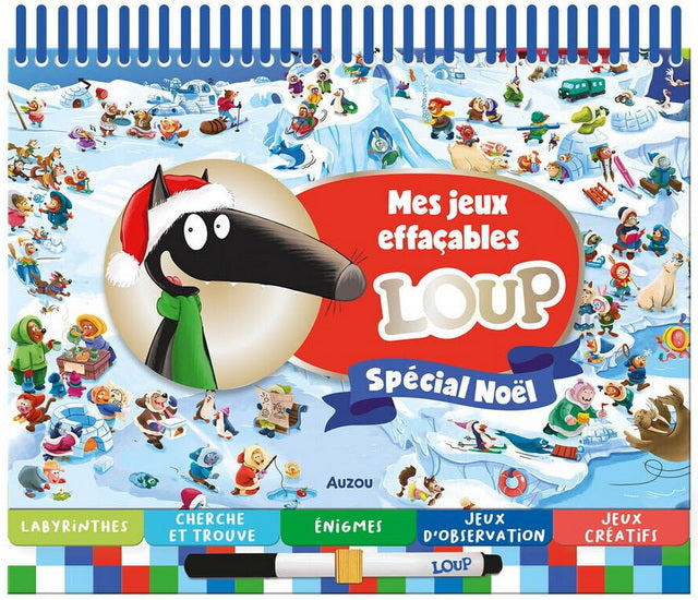 Un super cahier effaçable pour réaliser pleins d'activités spécial Noël avec Loup ! 42 pages pour faire (et refaire grâce au feutre effaçable) des labyrinthes, des cherche et trouve, résoudre des énigmes, réaliser des jeux d'observation... De quoi s'occuper pendant des heures avec Loup et ses amis !