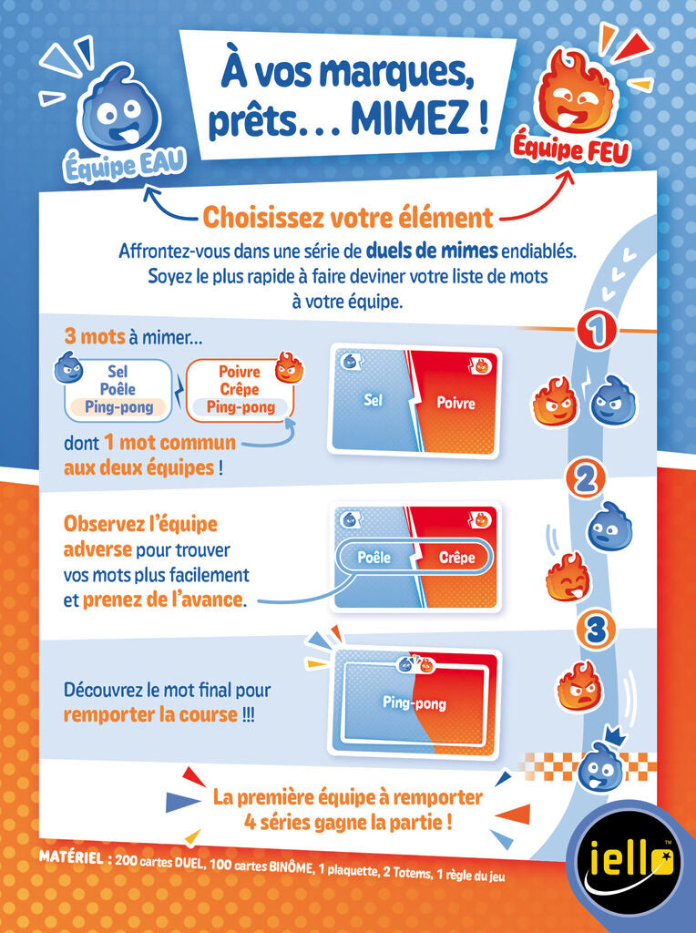 Mime Battle est un party game explosif et familial dans lequel deux équipes s’affrontent. Choisissez votre équipe et participez à une série de duels de mimes au rythme effréné. À chaque tour, un membre de chaque équipe aura trois mots à mimer, dont un partagé par les deux équipes !