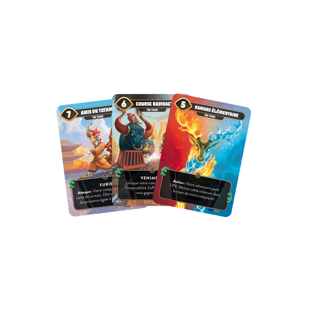 Doublez la stratégie, doublez le plaisir dans ce duel tactique en équipe au rythme effréné. Cette extension introduit des cartes spécifiques au 2vs2 pour créer des combos avec votre coéquipier. Il offre un gameplay rapide avec seulement 3 cartes dans votre main et 3 cartes dans votre deck.