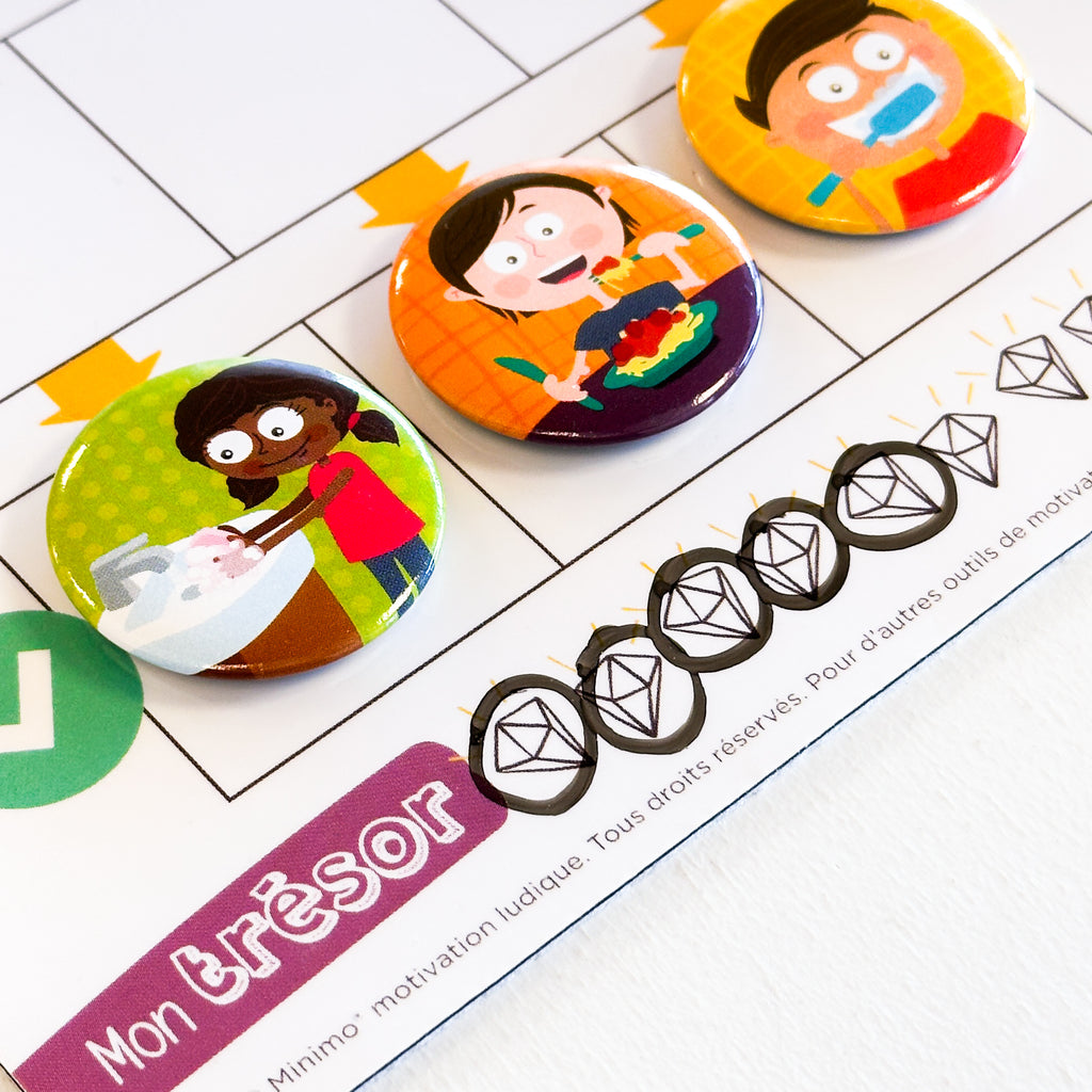*Utilisation suggérée. Les aimants n'ayant pas de texte, tu es libre de leur attribuer une signification qui convient à la réalité de ta famille! Amuse-toi, surtout si ton mini ne sait pas lire!