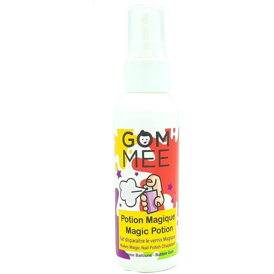 The most fun thing about nail polish is changing it up! With Magic Potion, you can make your 2-in-1 magic nail polish disappear in no time. In addition to its delicious bubble gum scent, this nail polish remover stands out for its gentle, alcohol-based formula. However, you should know that Magic Potion is only for use with GOM.MEE brand magic nail polishes. To use, simply spray it on your nail or soak a cotton ball in it, then wipe it off to make the polish disappear... like magic! For ages 3 and up.