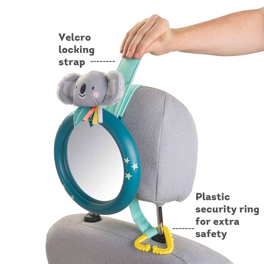 Colored rearview mirror allowing the adult to have a better view of baby in the back.