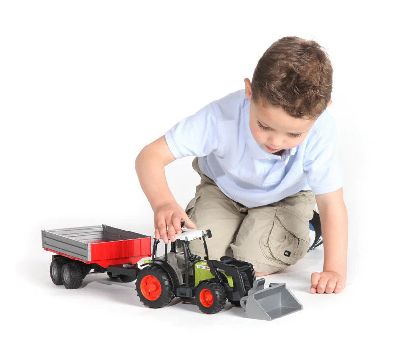 With the introduction of the Nectis series model, BRUDER rounds off its 1:16 model tractor series of the grassland specialist Claas. Of course, this tractor also has the typical BRUDER tractor features and can be combined with all farming front and equipment of the BRUDER range. BRUDER's small and lightweight moving tipping trailer is, therefore, the perfect match to this tractor as it can be used to realistically imitate, for example, its use in vineyards and orchards.