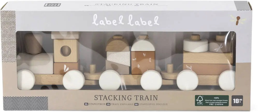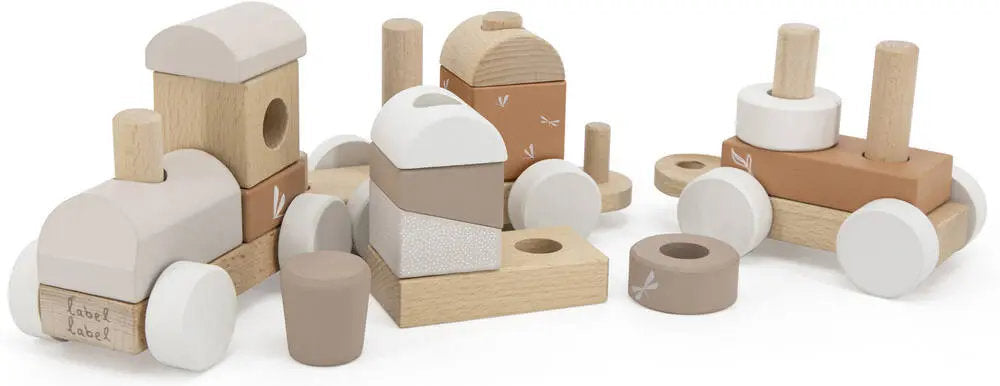 Like all other wooden toys, this train is made of high-quality FSC-certified beech wood, and the black and white accents are painted with water-based paint that is safe for children. The individual blocks can be used without the carriages for stacking and building. The carriages can also be connected to each other. This wooden stacking train offers an incredible amount of play possibilities; your little ones won't get bored. In addition to the many hours of fun, your child will practice their motor skills with this train. Their imagination and spatial awareness are also stimulated. Thanks to its warm, contemporary design, this train will be an eye-catcher in any room. Tip: Create even more fun with the Label Label wooden block set. Let the train go past houses, under a bridge, or through a tunnel. Or will it become a fun train at the zoo? Let your little one use their inspiration and creativity to build their own dream route.