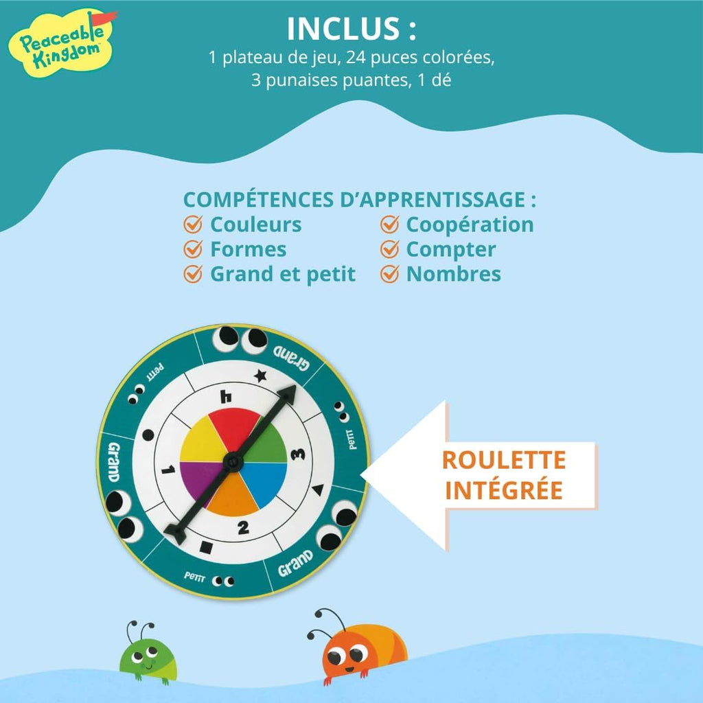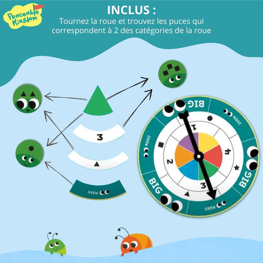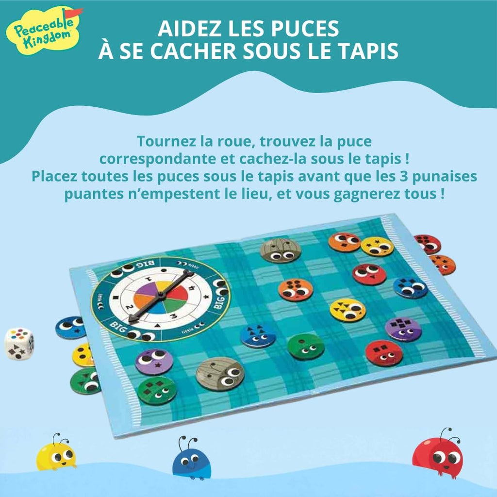 Mettez toutes les petites bestioles colorées sous le tapis avant que les trois bestioles puantes n'empestent l'endroit ! Observez bien et faites les correspondances ! Fais tourner la toupie et trouve l'insecte correspondant, puis glisse-le sous le tapis. Tour à tour, faites tourner la toupie et trouvez l'insecte correspondant, puis glissez-le sous le tapis avant que les trois punaises puantes n'y pénètrent. Chaque niveau ajoute un défi supplémentaire. Travaillez ensemble pour trouver ces correspondances, et vous gagnerez tous !