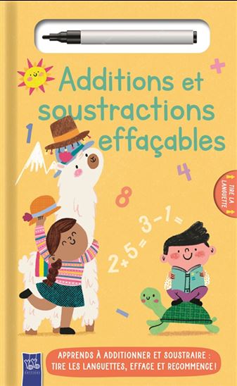 Additions et soustractions effaçables . Maîtrise les mathématiques en un rien de temps ! Peux-tu résoudre les additions et soustractions ? Sers-toi du feutre à base d'eau pour écrire tes réponses dans les cases vides. Tire ensuite la languette pour voir si tu as trouvé la bonne réponse. Envie de t'entraîner davantage ? Il te suffit d'effacer les pages avec un chiffon humide et de recommencer !.
