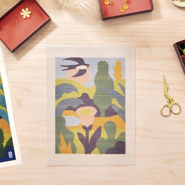 Atelier 65 propose une initiation à cette technique. Le canevas consiste à broder un motif en points comptés sur une toile imprimée ou tramée, à l'aide d'une aiguille et de fils colorés. Point après point, le motif prend vie offrant une création riche en textures et en couleurs.