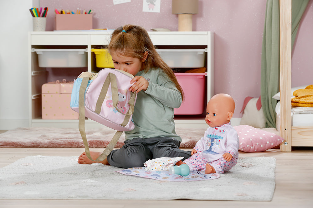 Ce sac à langer contient tout ce dont les petits parents de poupées ont besoin pour prendre soin de leurs poupées de 36 cm et 43 cm. Avec le matelas à langer, la couche et la boîte à poudre inclus, la poupée est toujours bien soignée. Le sac est confortable à porter et offre suffisamment d'espace pour d'autres accessoires.