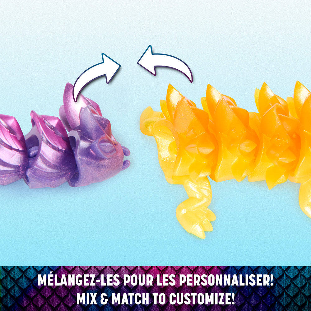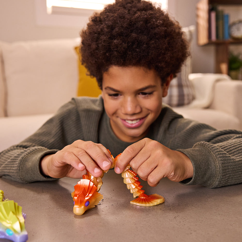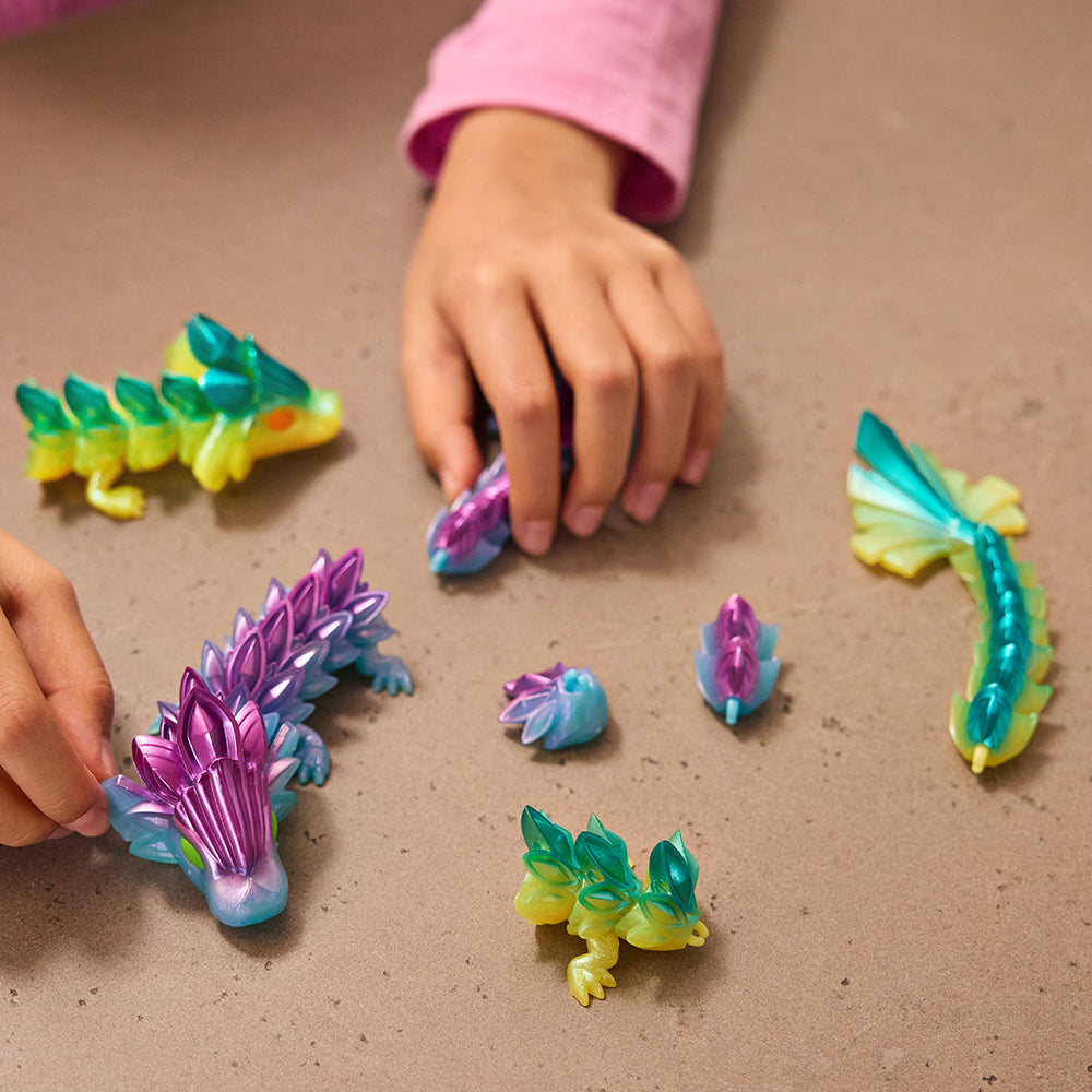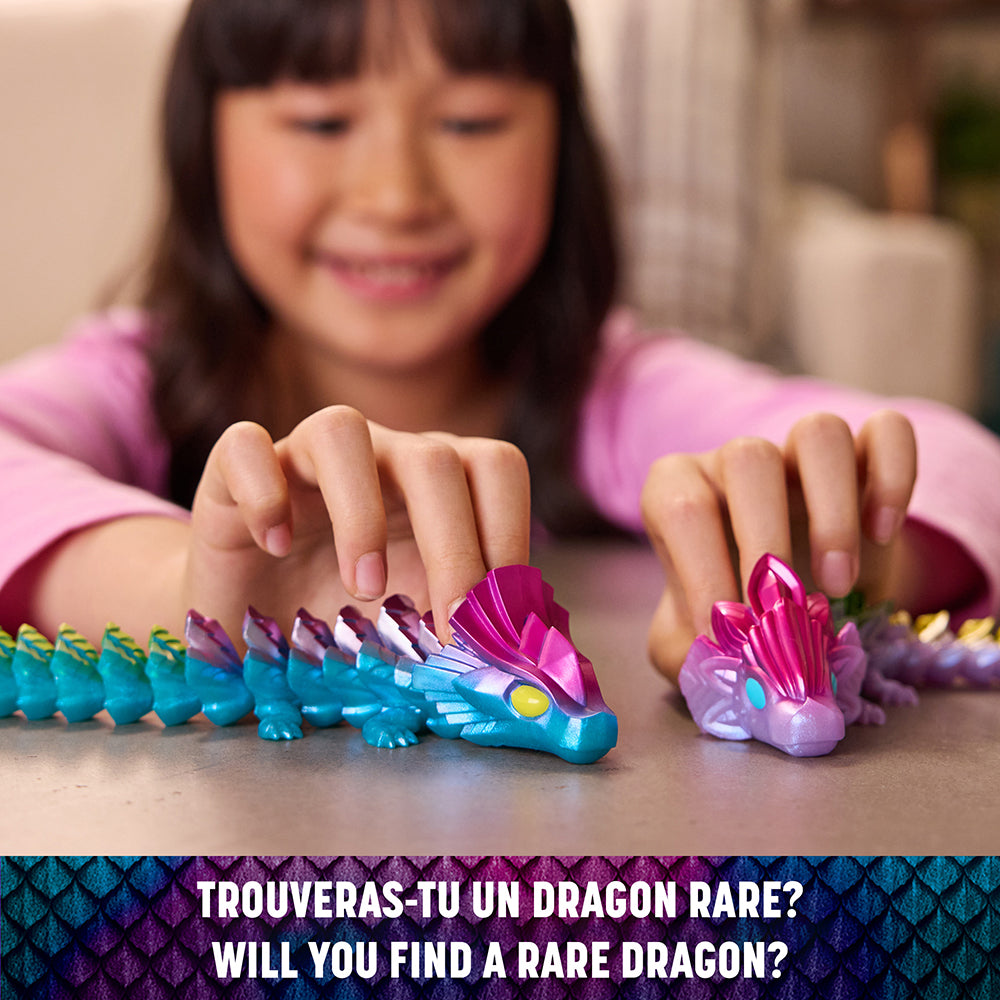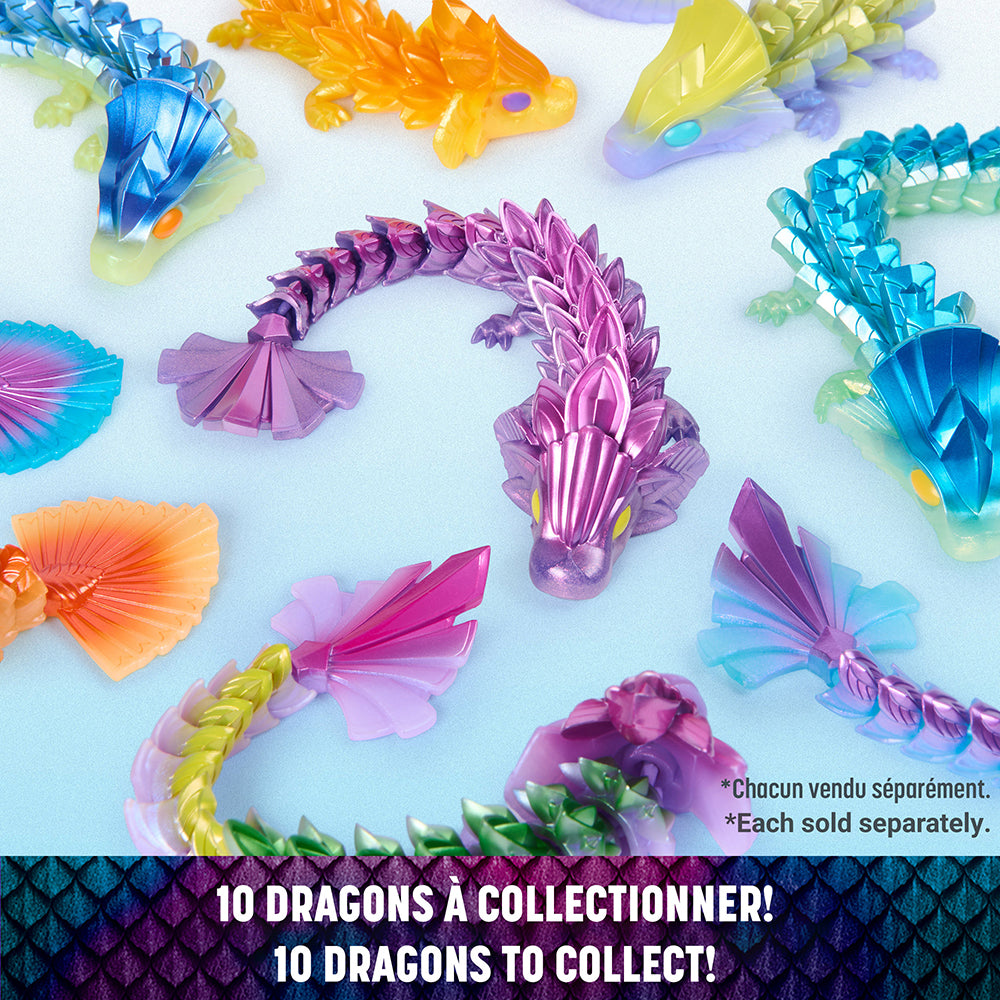 Chaque figurine dragon articulée arbore de superbes couleurs et de magnifiques détails. Dotés de points d'articulations mobiles, les CrystaLynx Dragons peuvent être posés de différentes manières fascinantes, offrant une expérience ludique d'objet à manipuler ainsi qu'une façon amusante de se détendre et de soulager le stress. Il y a 10 CrystaLynx Dragons de 22,8 cm différents à collectionner (chacun vendu séparément), avec une chance de découvrir 1 des 2 figurines rares. Combinez les points d'articulation de votre dragon avec ceux de n'importe lequel des CrystaLynx Dragons de 22,8 cm (vendus séparément) pour personnaliser son look. Avec leurs couleurs riches et leurs détails complexes, les CrystaLynx Dragons se démarqueront chez vous ou au bureau. Exposez votre dragon sur votre bureau, dans le salon, la chambre ou partout où vous le souhaitez. Les CrystaLynx Dragons sont une idée cadeau unique pour les enfants, les adolescents et les adultes, à partir de 8 ans. Découvrez également nos autres jouets à manipuler, les geckos CrystaLynx. Ramenez chez vous votre propre figurine à collectionner de 22,8 cm CrystaLynx Dragons.