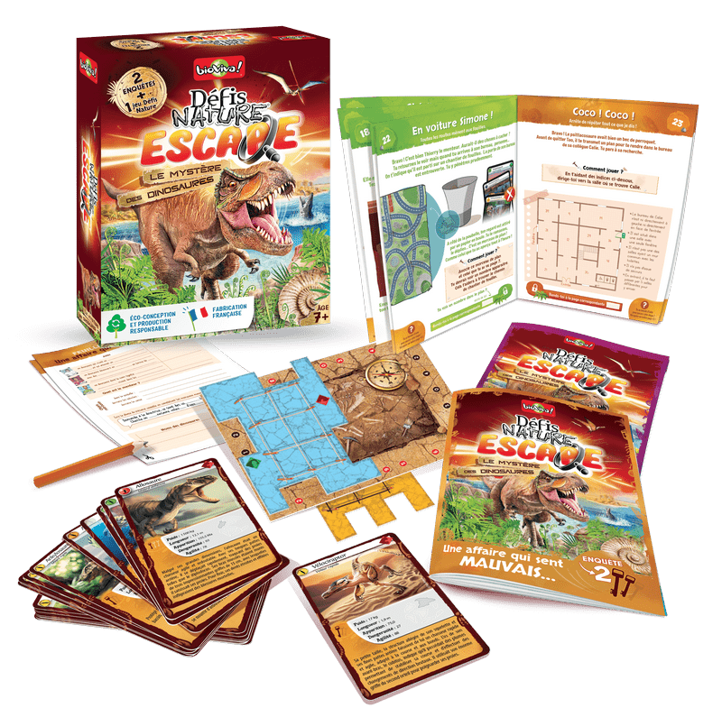 Un jeu d’enquête pour partir à la découverte des incroyables secrets des dinosaures ! Le jeu contient deux enquêtes à résoudre et un jeu de cartes Défis Nature. Trouvez les indices sur les cartes et les livrets d’enquête.