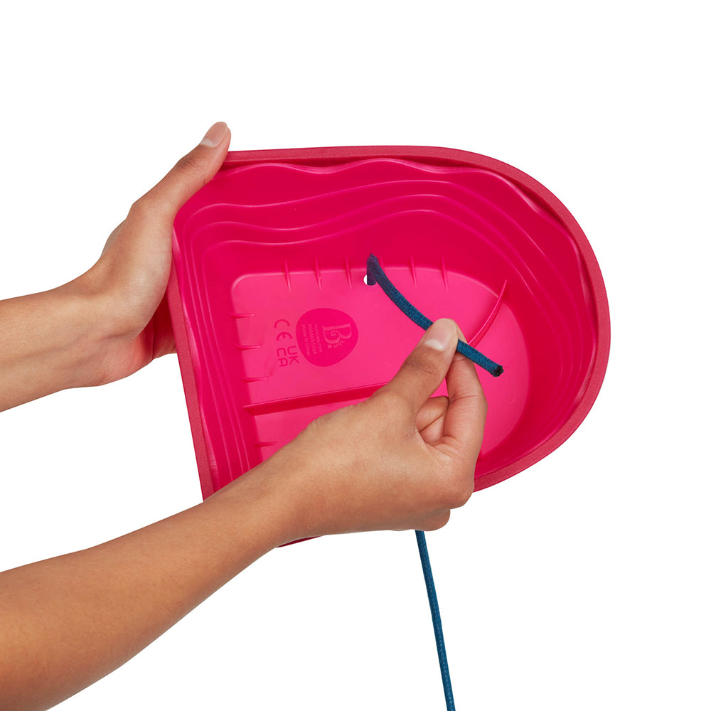 Insère les cordes dans n’importe quelle paire d’échasses, fais quelques nœuds et marche!