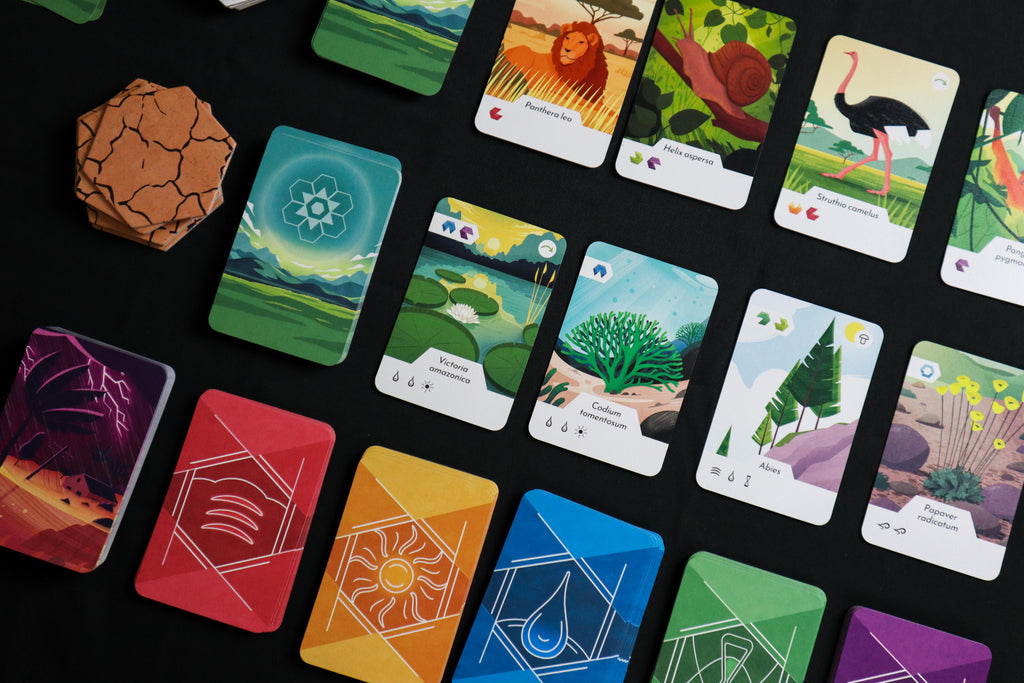 Avec la bonne combinaison de cartes de plantes, vous obtiendrez des animaux et avec la bonne combinaison d'animaux, vous obtiendrez des tuiles de biomes et, avec un peu de chance, vous repeuplerez le monde ensemble.