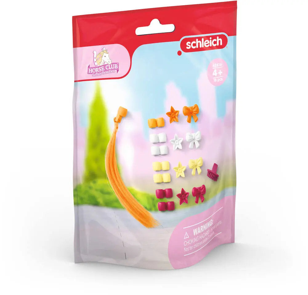 C’est ce que l’on appelle l’embarras du choix ! La crinière du cheval, que l’on peut véritablement peigner, ne demande qu’à être ornée de perles. Ou de fleurs ? Ou encore de nœuds ? Ou peut-être un mélange de tout ça ? Tu as même le choix entre différentes couleurs. Ainsi paré, ton cheval gagnera à coup sûr le prochain concours de beauté !