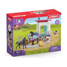 Le box à cheval contient tout ce dont la Jument Appaloosa et son poulain ont besoin : un abreuvoir, un râtelier et bien sûr des couvertures pour chevaux assorties en tissu. La selle et le harnais sont amovibles et peuvent être rangés sur le support. Les chevaux prennent l’air au paddock. Grâce à sa conception modulaire, le box à cheval peut facilement être associé à d’autres kits de l’univers HORSE CLUB.