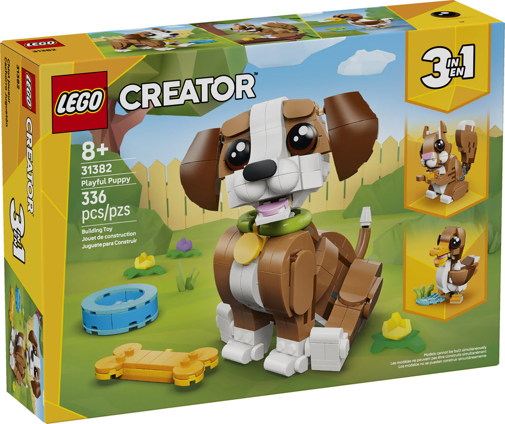 L’ensemble de construction LEGO® Creator 3 en 1 Les animaux mignons : le chiot joueur (31382) permet aux enfants de 8 ans et plus de jouer à inventer des histoires amusantes. Ce joli jouet d’animaux pour filles et garçons offre 3 options de construction différentes avec le même ensemble de briques.