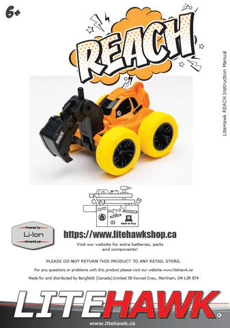 Conduis, tourne et retourne - fais des cascades incroyables avec LiteHawk REACH est inspiré par les véhicules de construction, avec 4 roues motrices et une flèche / un godet que tu peux utiliser pour creuser, soulever le véhicule et faire des cascades ! Les pneus souples en caoutchouc surdimensionnés offrent une excellente adhérence. 4 roues motrices