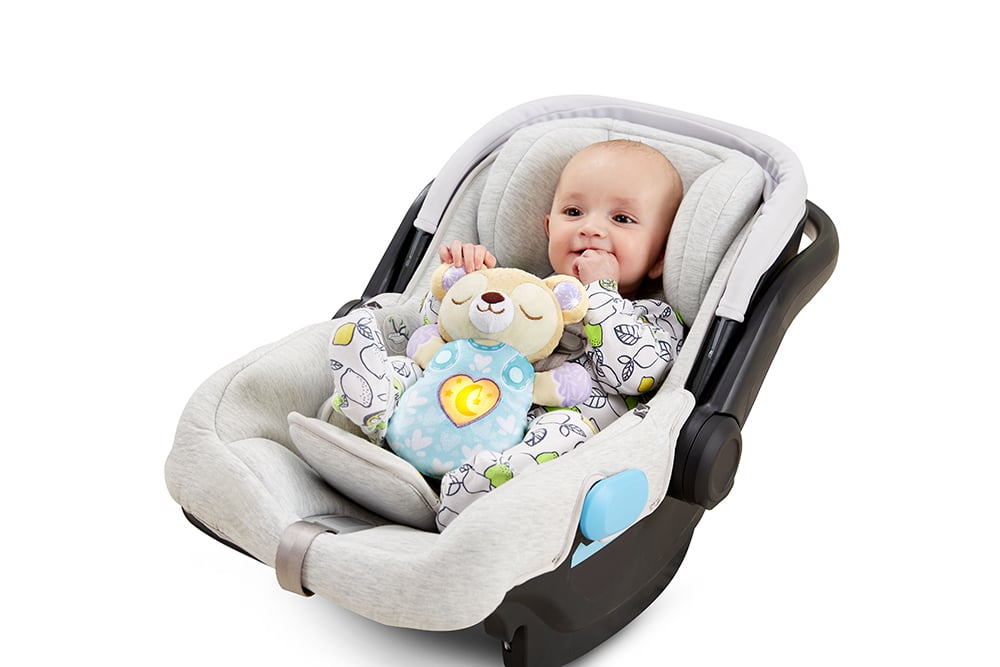 À la maison, à la garderie, chez grand-maman ou dans la voiture, aidez les bébés à s'installer et à faire un petit somme n'importe où; Mon ourson lumi dodo se glisse dans le sac à langer pour être toujours prêt.