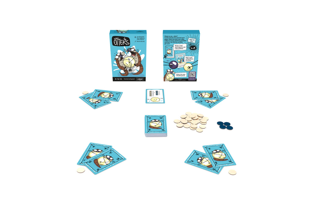 Otters est un jeu de cartes rempli de loutres, d'oursins et de folie, Ce jeu d'ambiance vient dans une boite compacte, parfaite pour transporter dans tous vos partys. Avec un style de jeu unique qui inclut de l'élimination de joueurs, du "prends-ça" et la méchanique de la patate chaude réinventée, chaque ronde promet d'être différente de la précédente. Un jeu rempli d'Excitation qui vous fera rire aux éclats...jusqu'à ce que vous soyez éliminé!
