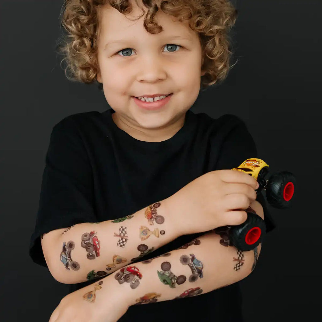 Les camions monstres arrivent pour le prochain spectacle. Ils sont parmi les véhicules les plus impressionnants. Jumelez-les avec les tatouages Les voitures classiques ou les véhicules tout-terrain pour encore plus de cascades à 4 roues.
