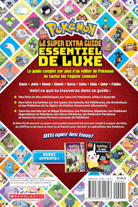 La nouvelle édition du très attendu Super extra guide essentiel de luxe est arrivée, et elle comprend de tout nouveaux Pokémon! Avec 640 pages en couleurs et des informations sur plus de 1 000 Pokémon, c’est un ouvrage indispensable pour les passionné·es de Pokémon de tous âges.
