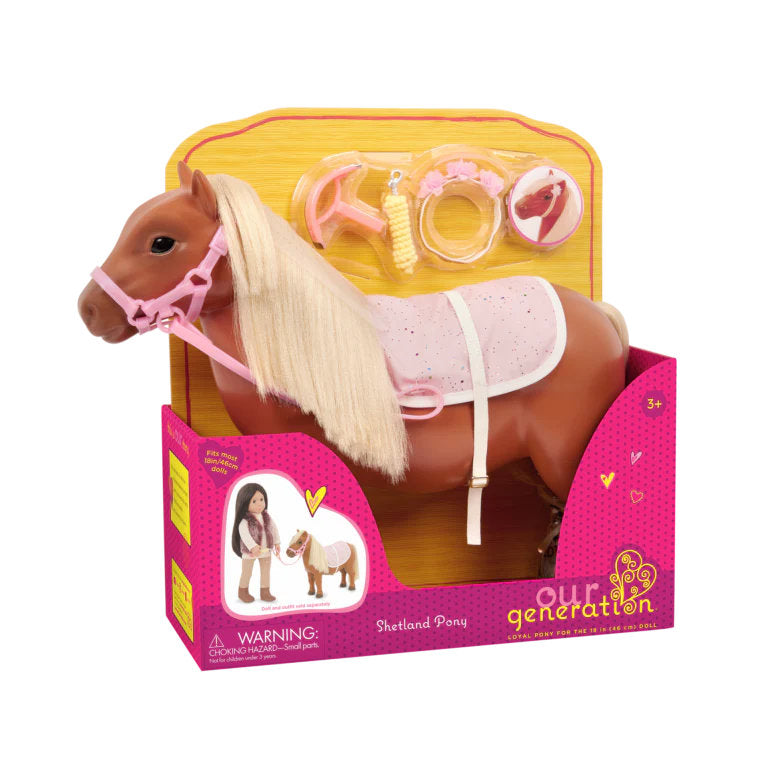 Découvre le magnifique Poney Shetland! Ce petit poney est l'incarnation de la douceur et de l'aventure. Équipé d'un licou et d'une laisse, il est prêt à partir en balade avec toi. Sa couverture rose lui donne une allure élégante et confortable, tandis que le ruban fleuri décoratif assorti ajoute une touche de charme. Utilise le racloir pour gratouiller doucement son pelage et lui offrir des moments de détente. Votre poney incarne l'amour profond pour ces adorables compagnons et invite à des promenades sans fin dans des paysages enchanteurs. Prépare-toi à vivre des aventures inoubliables avec ce merveilleux poney !