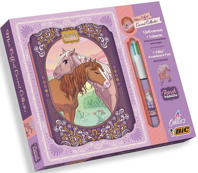 Personnalise ton stylo 4 couleurs avec le charm ranch vanille et écris toutes tes aventures dans ton carnet ! .
