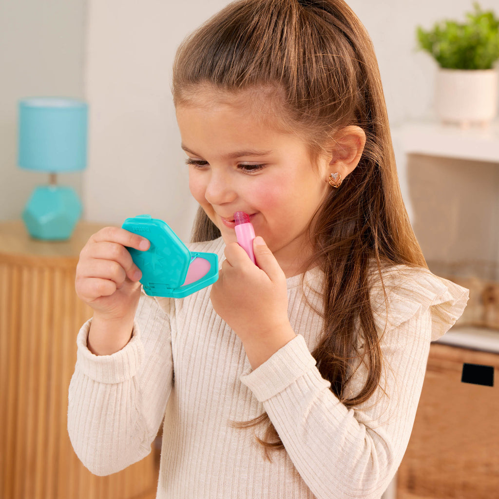 Le set de sac à main Sparkle Time de Battat permet de s'amuser et d'avoir du style! Ouvrez le joli sac à main et trouvez un paquet de cadeaux à l'intérieur! Il y a un rouge à lèvres jouet, une houppette et un miroir compact pour faire semblant de se maqui