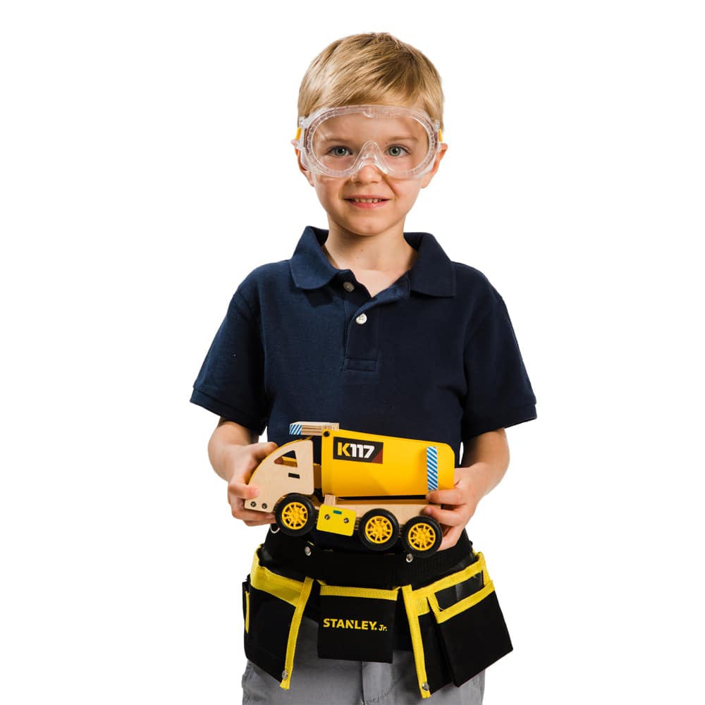 Comprend : pièces de bois pré-coupées, roues, vis et clous, papier sablé, 4 peintures, 1 pinceau, 1 feuille d'autocollants, mode d’emploi