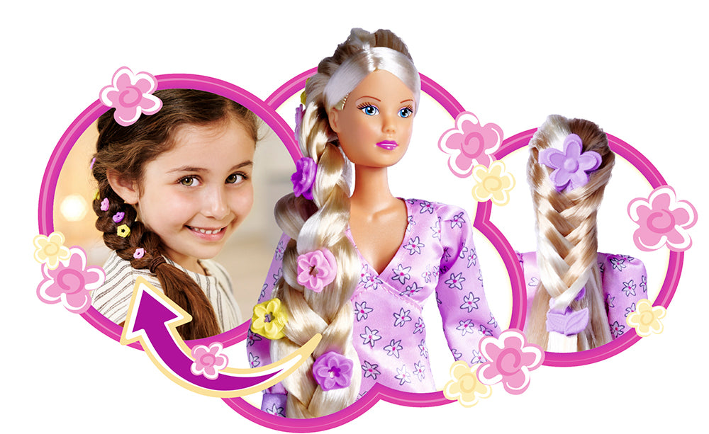 Créez des coiffures magiques avec Steffi et ses cheveux extra-longs!