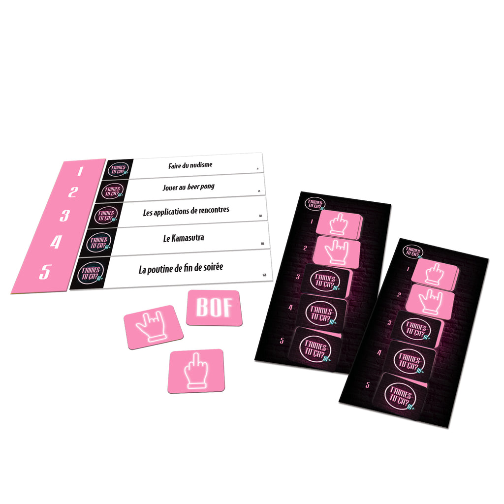 tordues, mais surtout des révélations surprenantes! Ce jeu contient : 100 cartes-énoncés (200 énoncés), 8 planchettes-