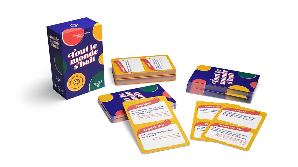 Développé à partir du populaire podcast Tout le monde s’haït animé par Marylène Gendron et Sam Cyr, ce jeu de conversation vous invite à plonger dans les petits travers humains, les insécurités qui nous grugent, et tout ce qu’on garde (habituellement) pour soi.